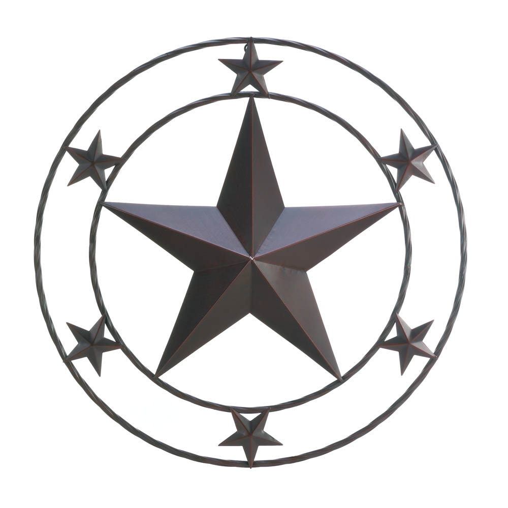 • Saddle your wall with Western style! This dramatic iron wall decor features a large star surrounded by six smaller stars to give your space a little bit of cowboy flair.