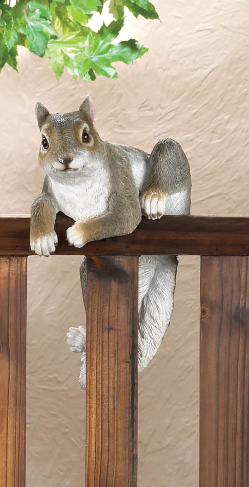 • This mischievous squirrel named Chip can't resist climbing up to see what's on the other side. A great addition to your potted plant or garden gate, he'll bring charm to your space.