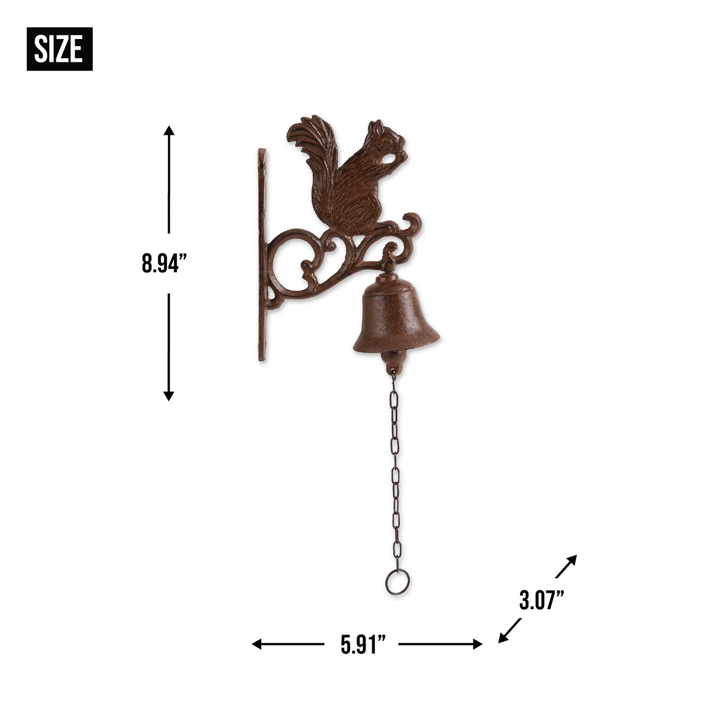 • Cast iron squirrel bell is made of durable cast iron and is easily mountable to garage, house, fence posts, deck or fence in your yard.